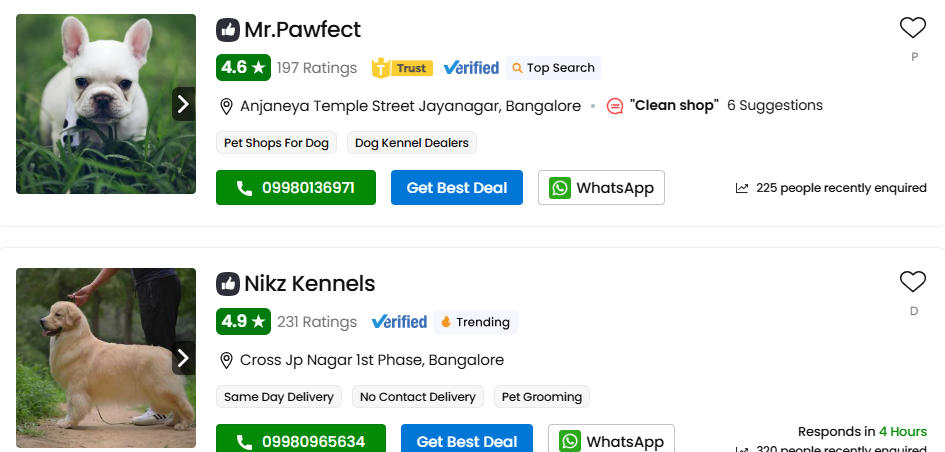 I have noticed that Just Dial is listing dog breeders (please see photos attached) on their platform - website and app.